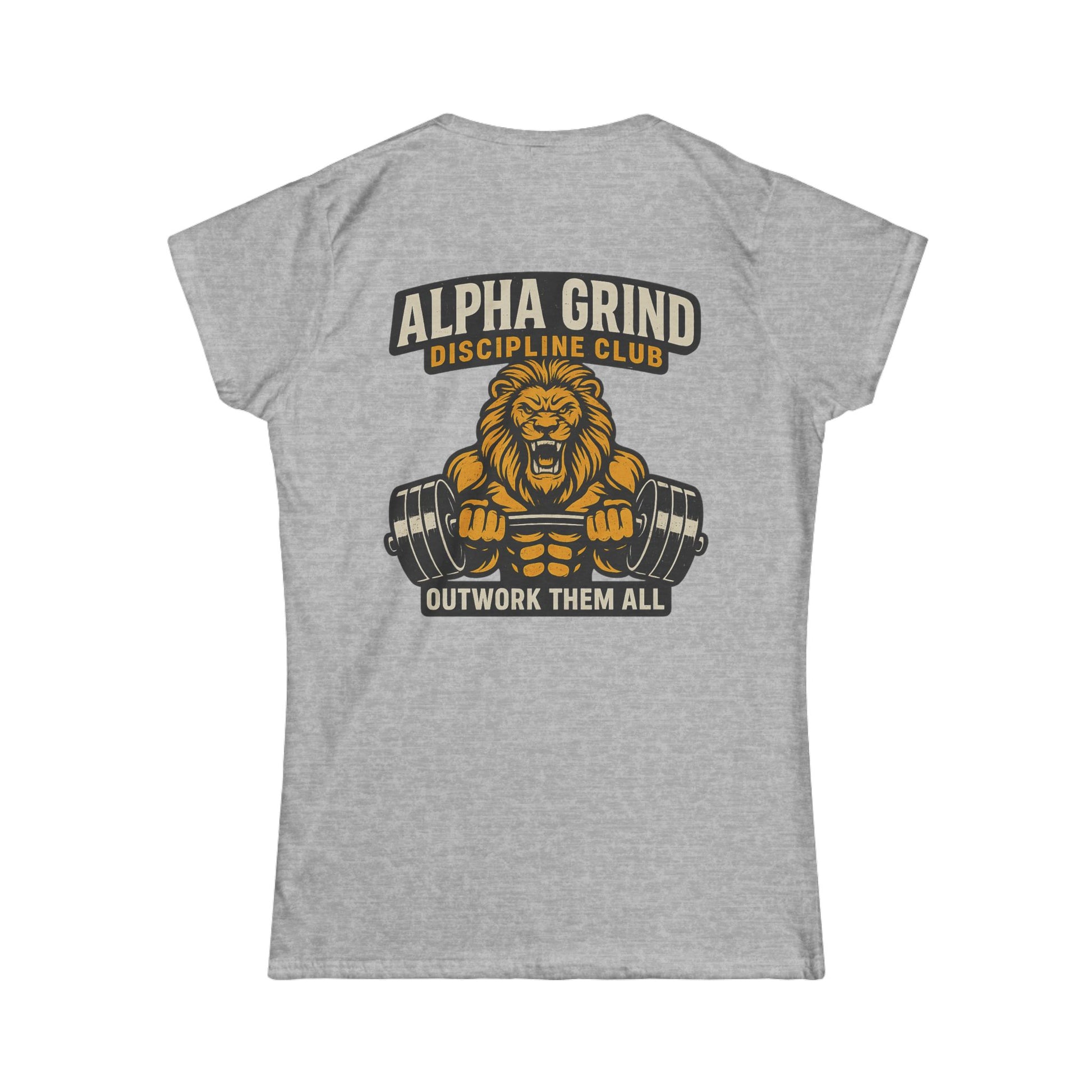 Alpha Grind Women’s Tee (front logo + back design) – Gym Apparel