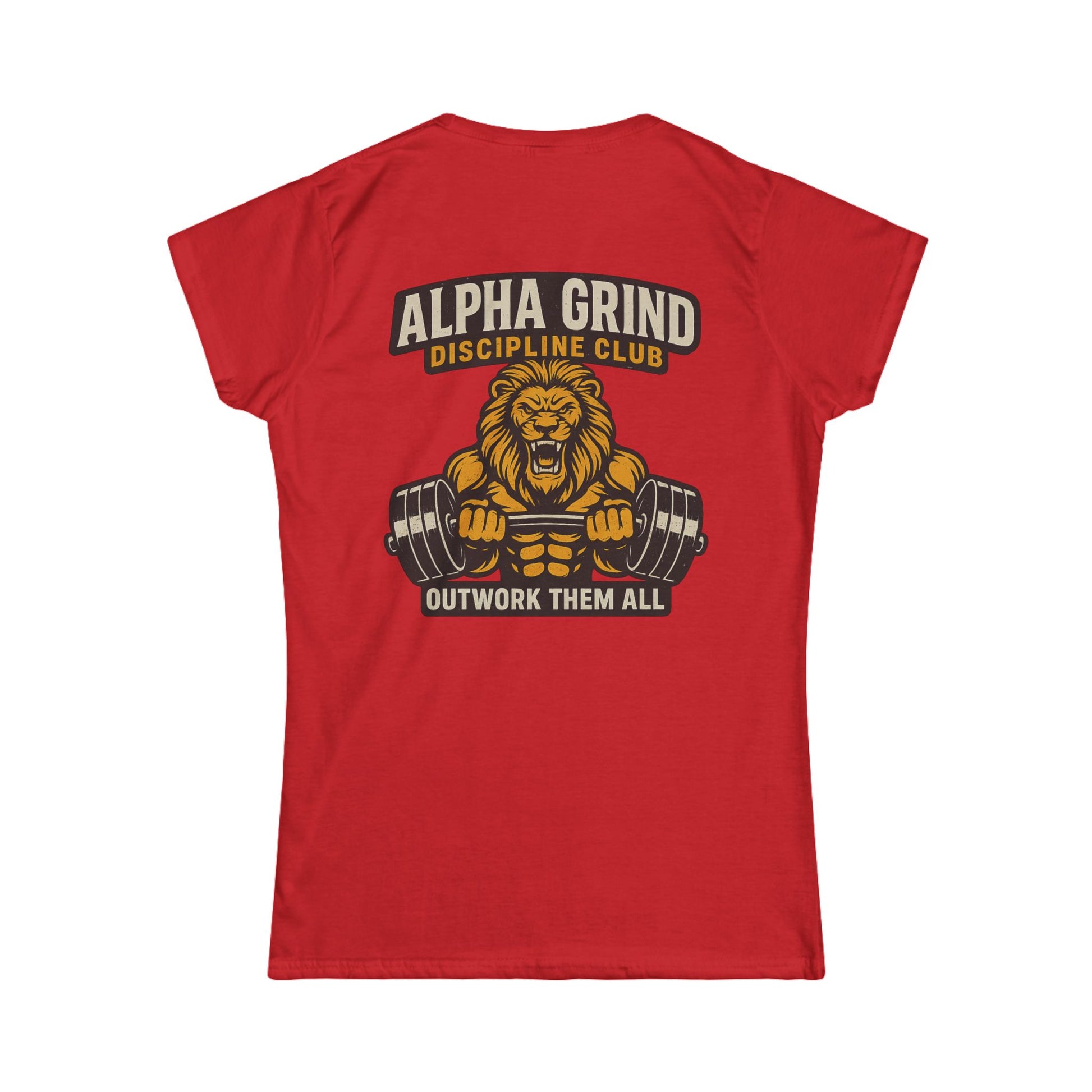 Lead the pack or get left behind. The Women’s Softstyle Tee from our Discipline Club collection brings alpha energy to every lift—built for those who grind harder, push further, and outwork them all. Featuring our fierce “Alpha Grind” lion graphic, this shirt embodies power, grit, and laser-focused discipline.