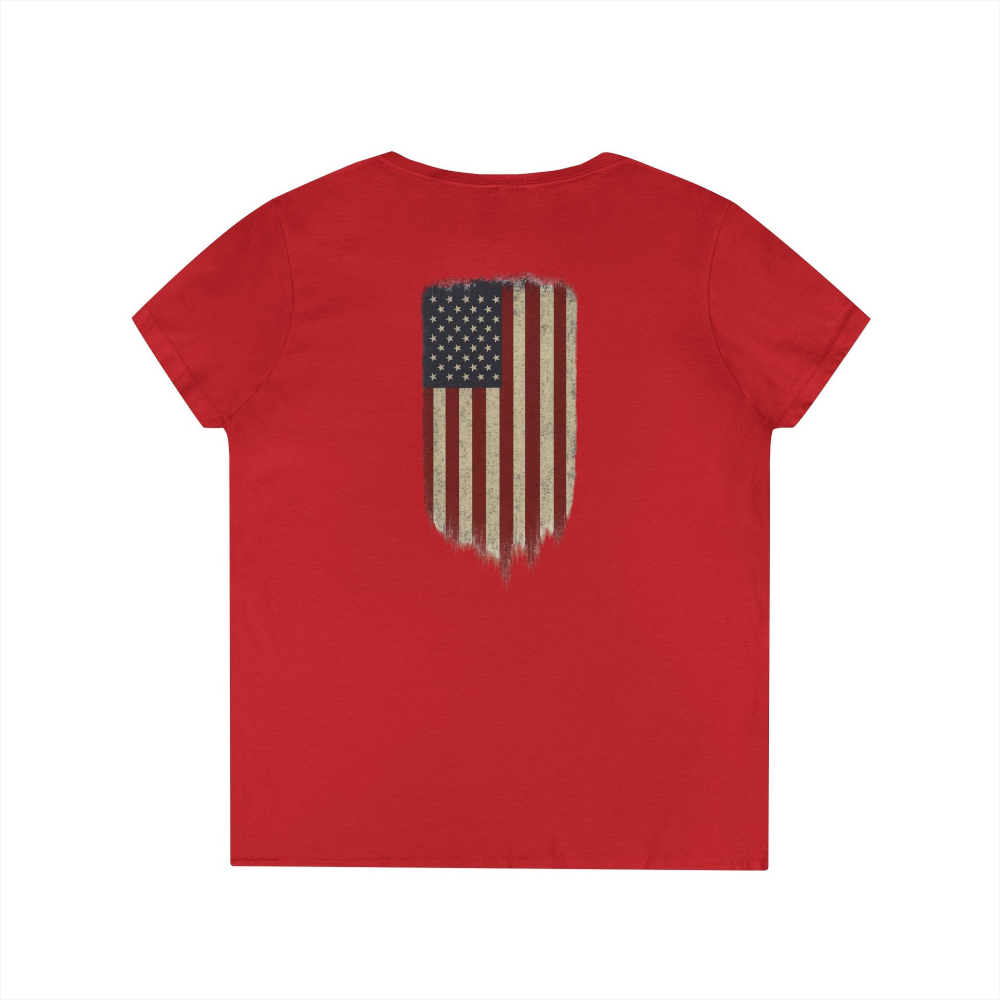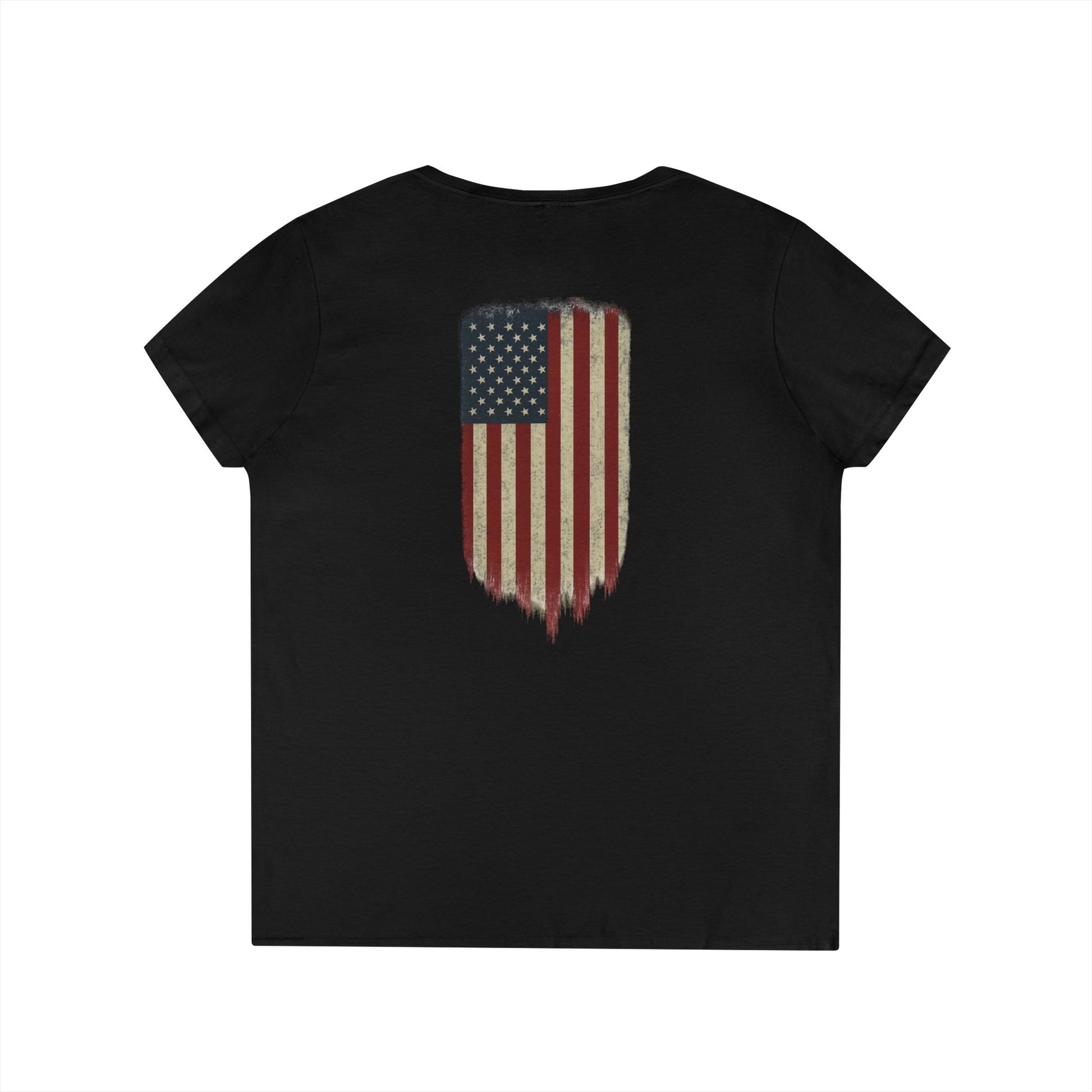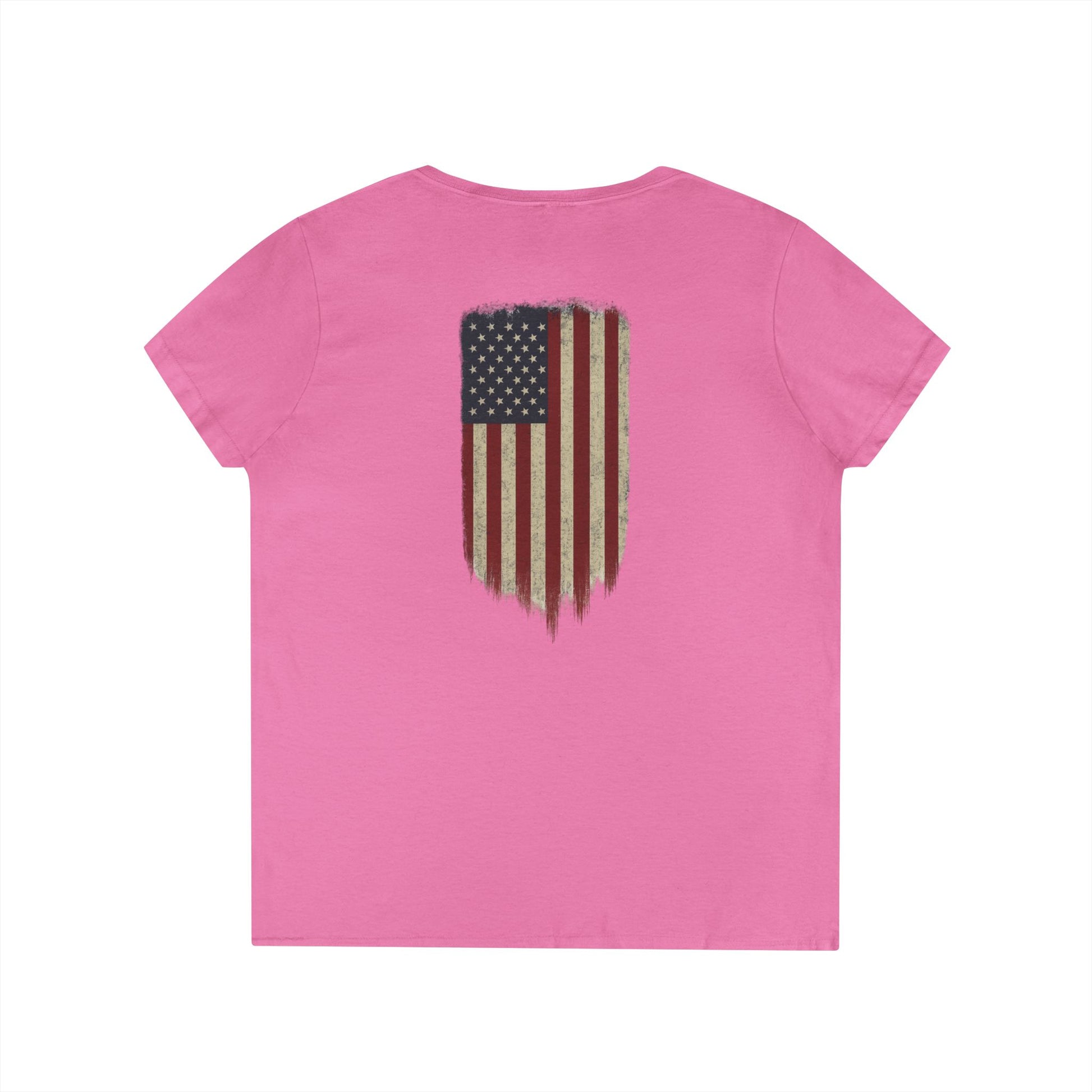 American Flag Tee (front logo + back design) – American Pride Ladies V-Neck