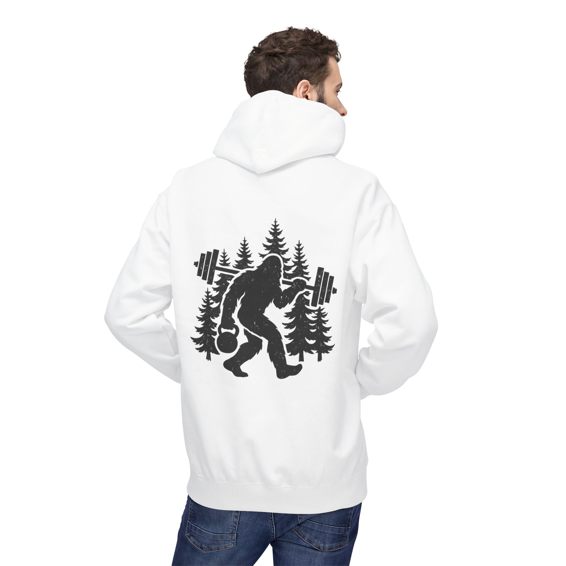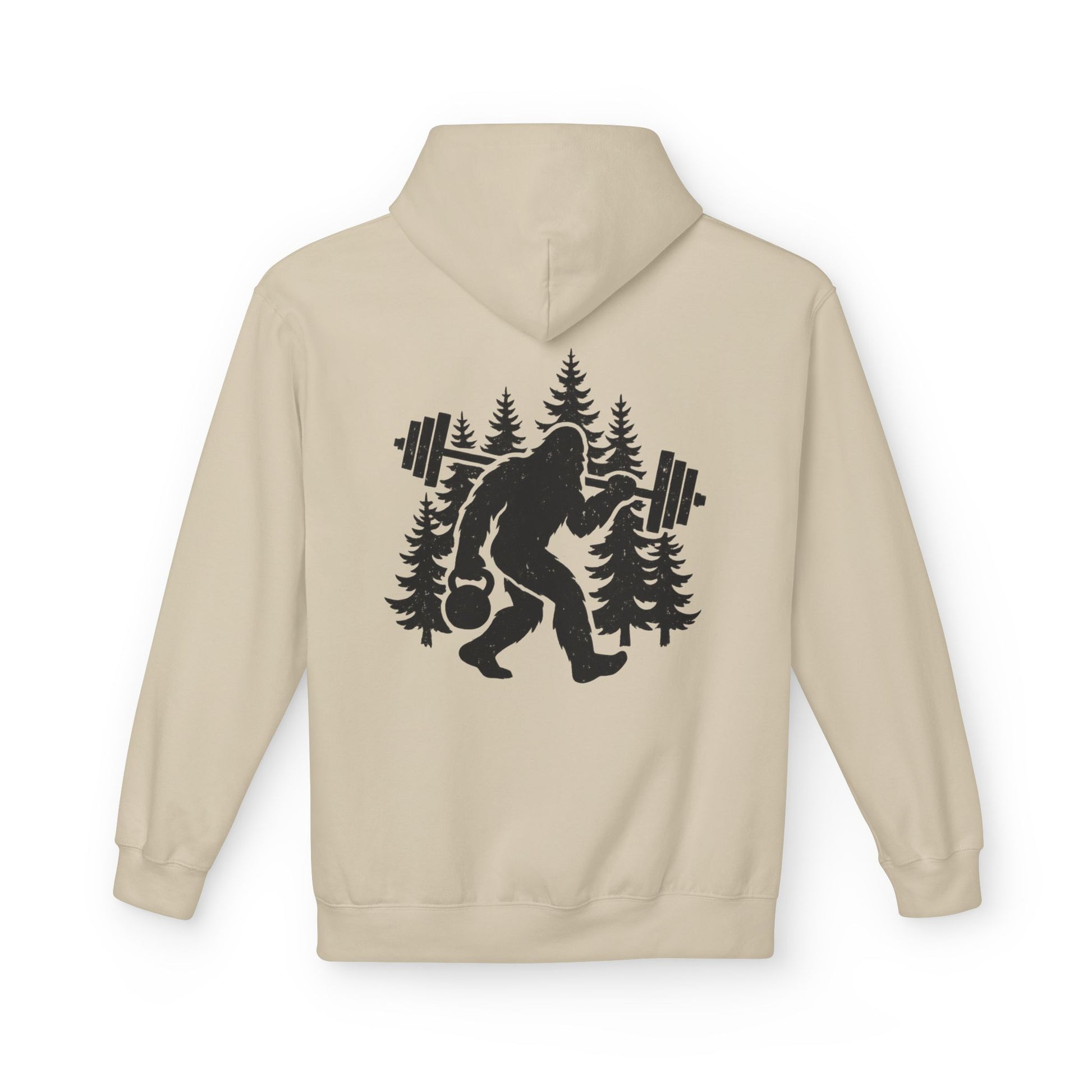 The Bigfoot Gains Hoodie brings heat without hype. With a minimalist front logo and a full-back graphic of Bigfoot tossing serious iron, this hoodie is made for early mornings, late nights, and every gritty session in between.