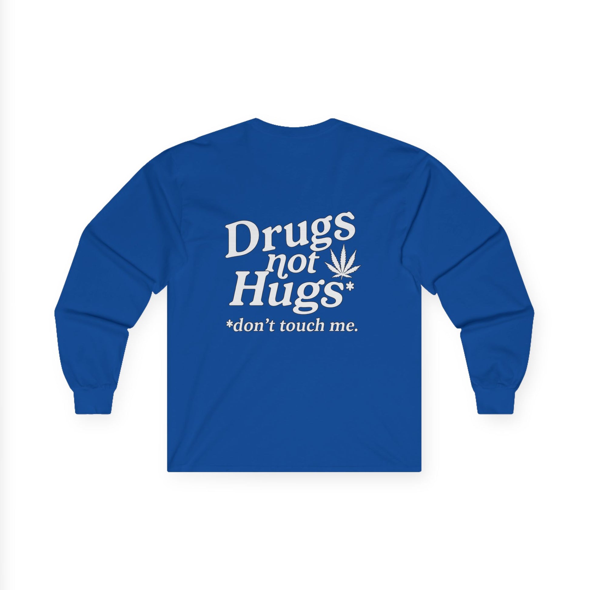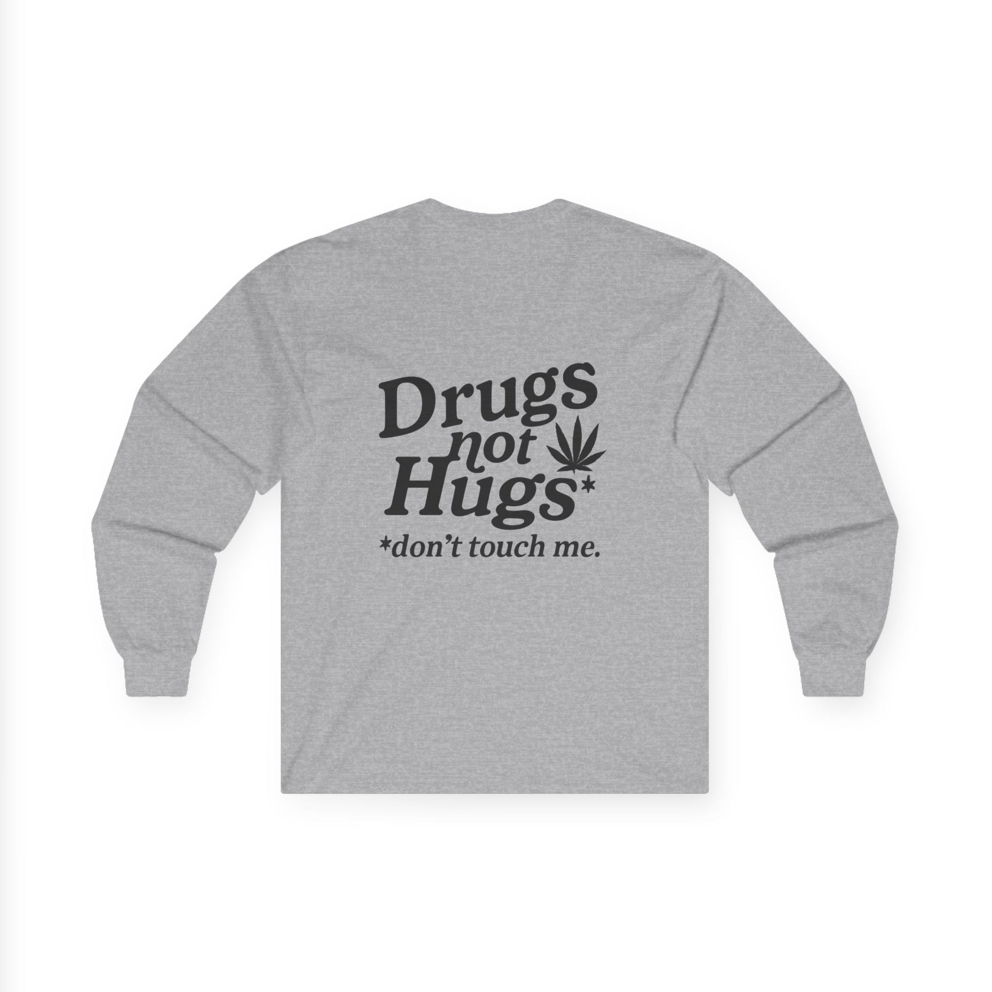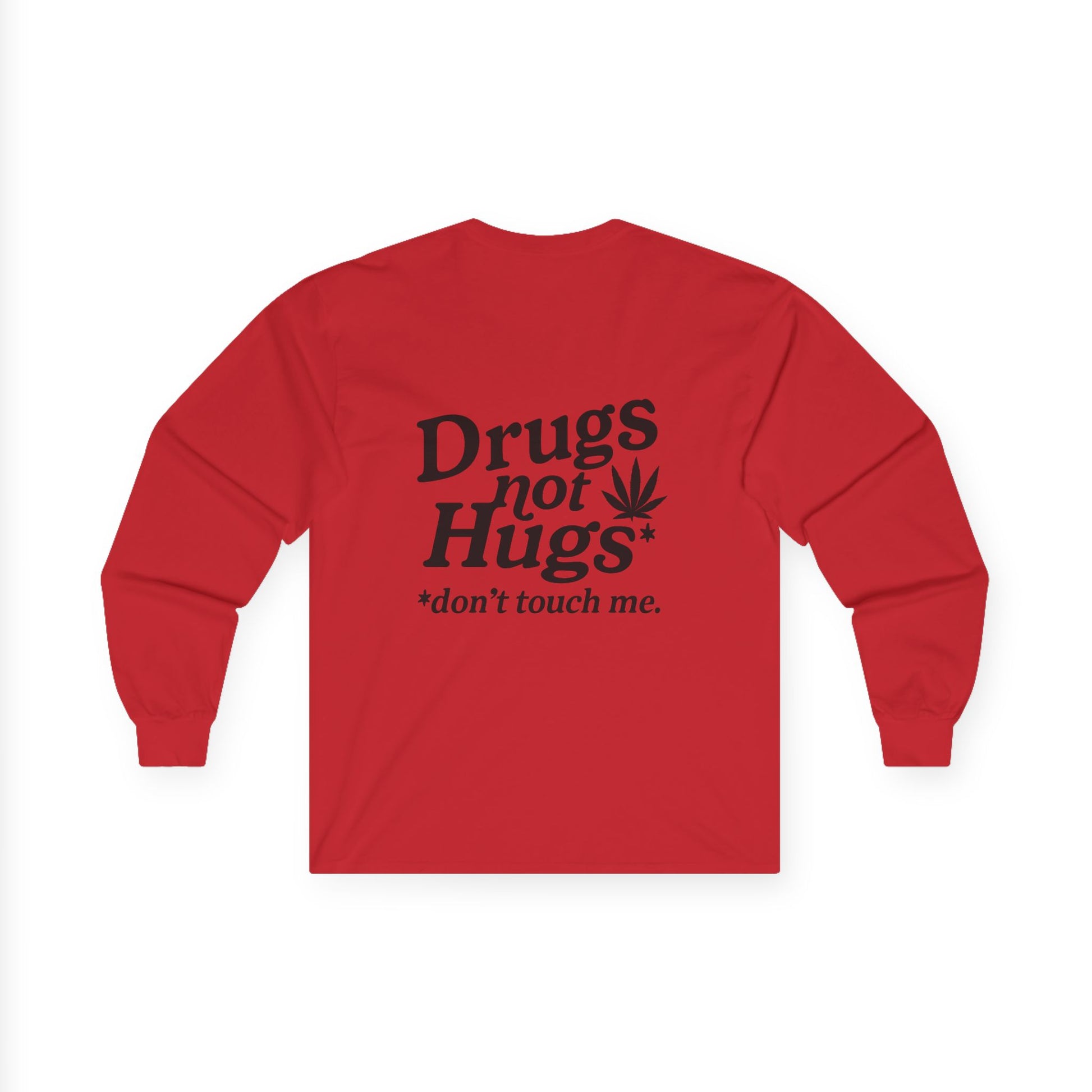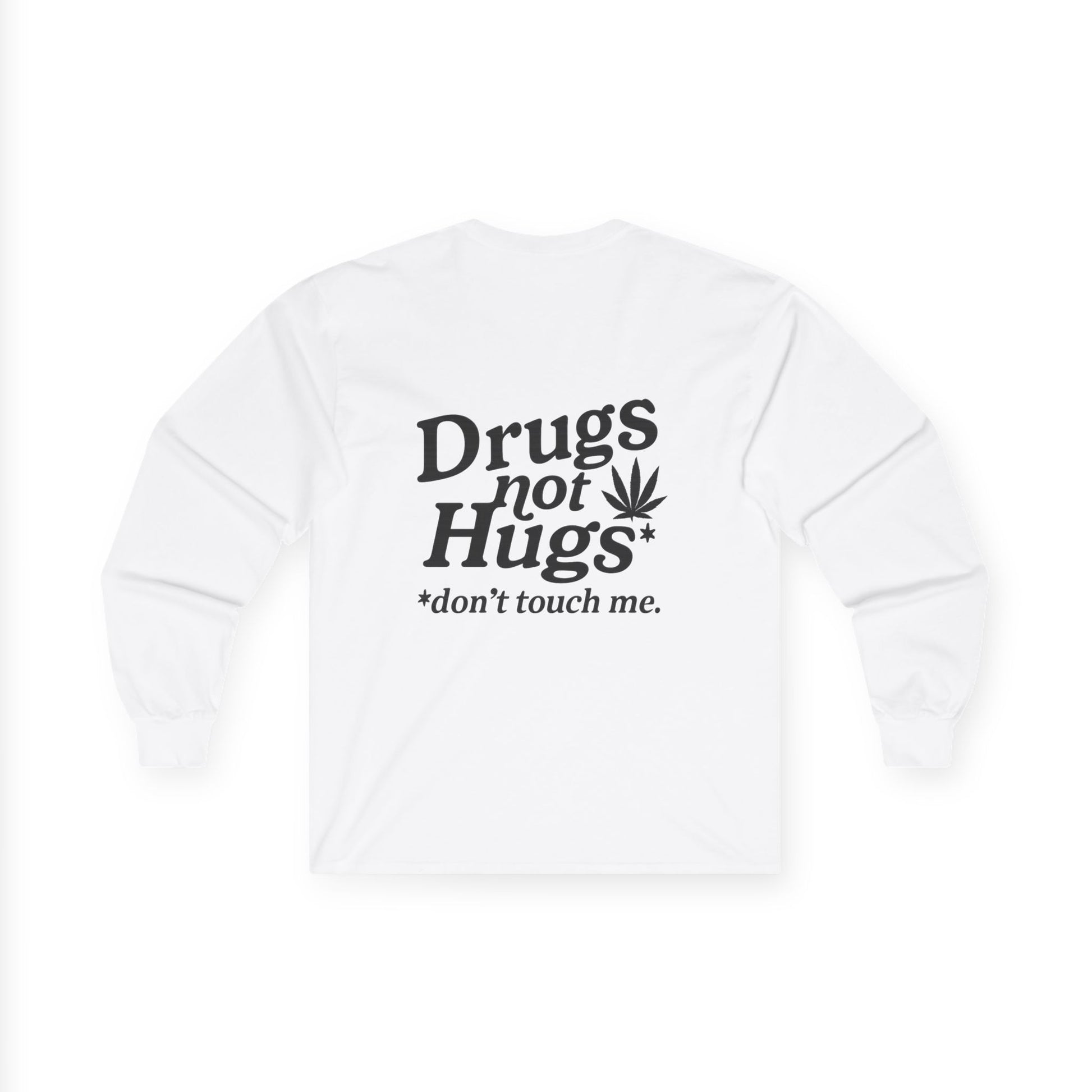 Drugs Not Hugs Long Sleeve Tee (front logo + back design) - Meme Apparel