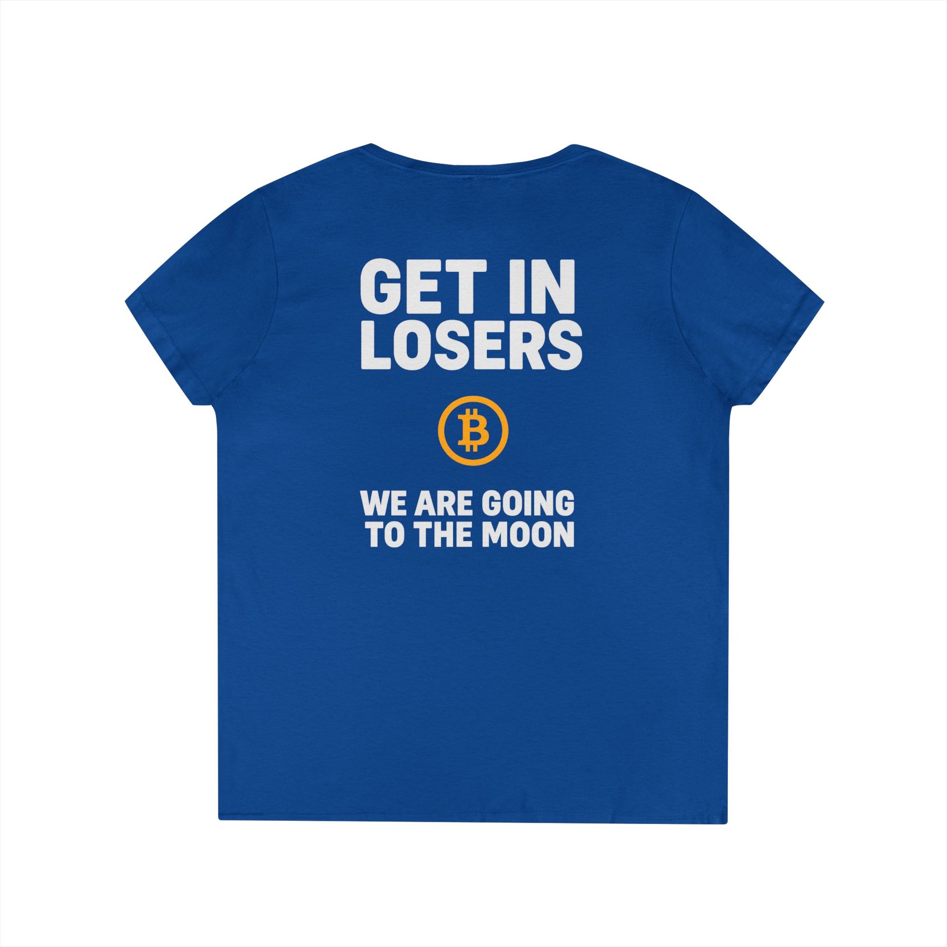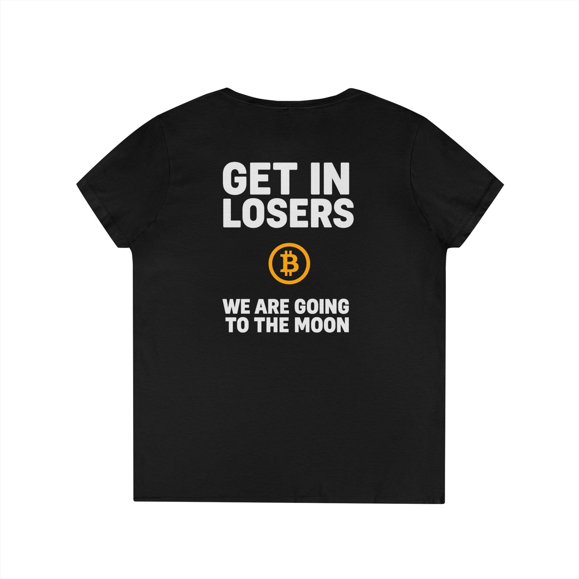 Get In Losers Bitcoin Moon Mission V-Neck T-Shirt (front logo + back design) – Investor Apparel