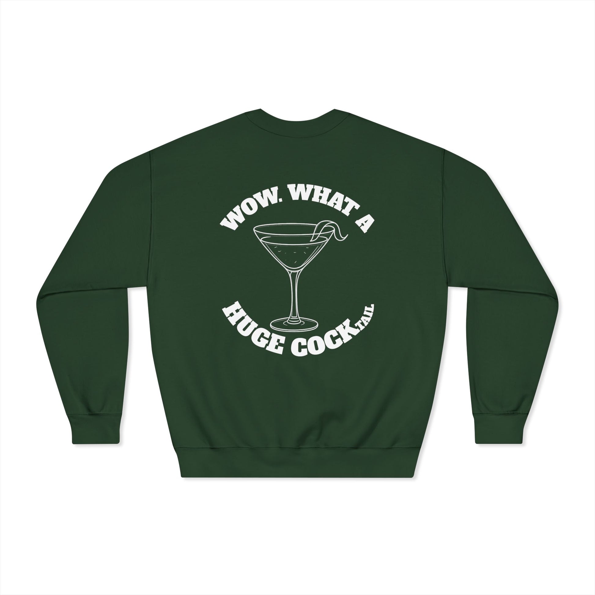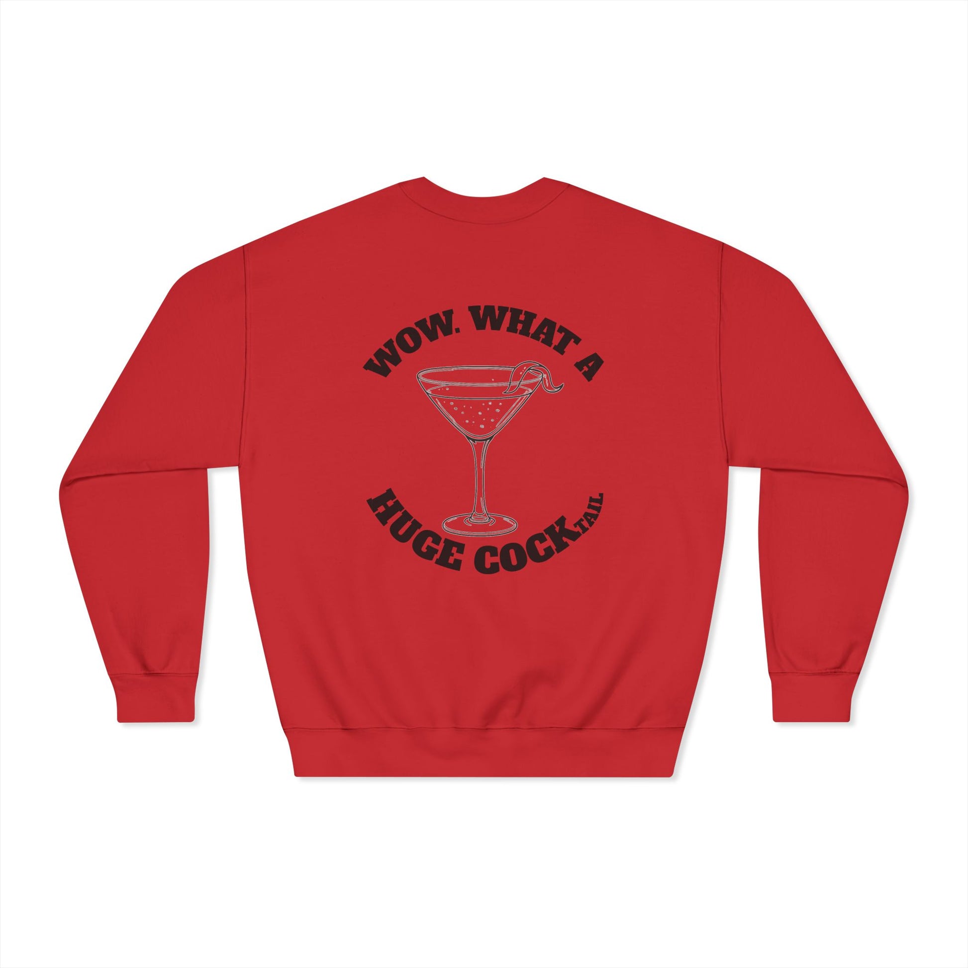 Cozy meets comedy in this cocktail of chaos. The “WOW. WHAT A HUGE COCK...tail” graphic hits different when it's printed on a super-soft, DryBlend® crewneck—bringing the heat and the punchline even when the temps drop.