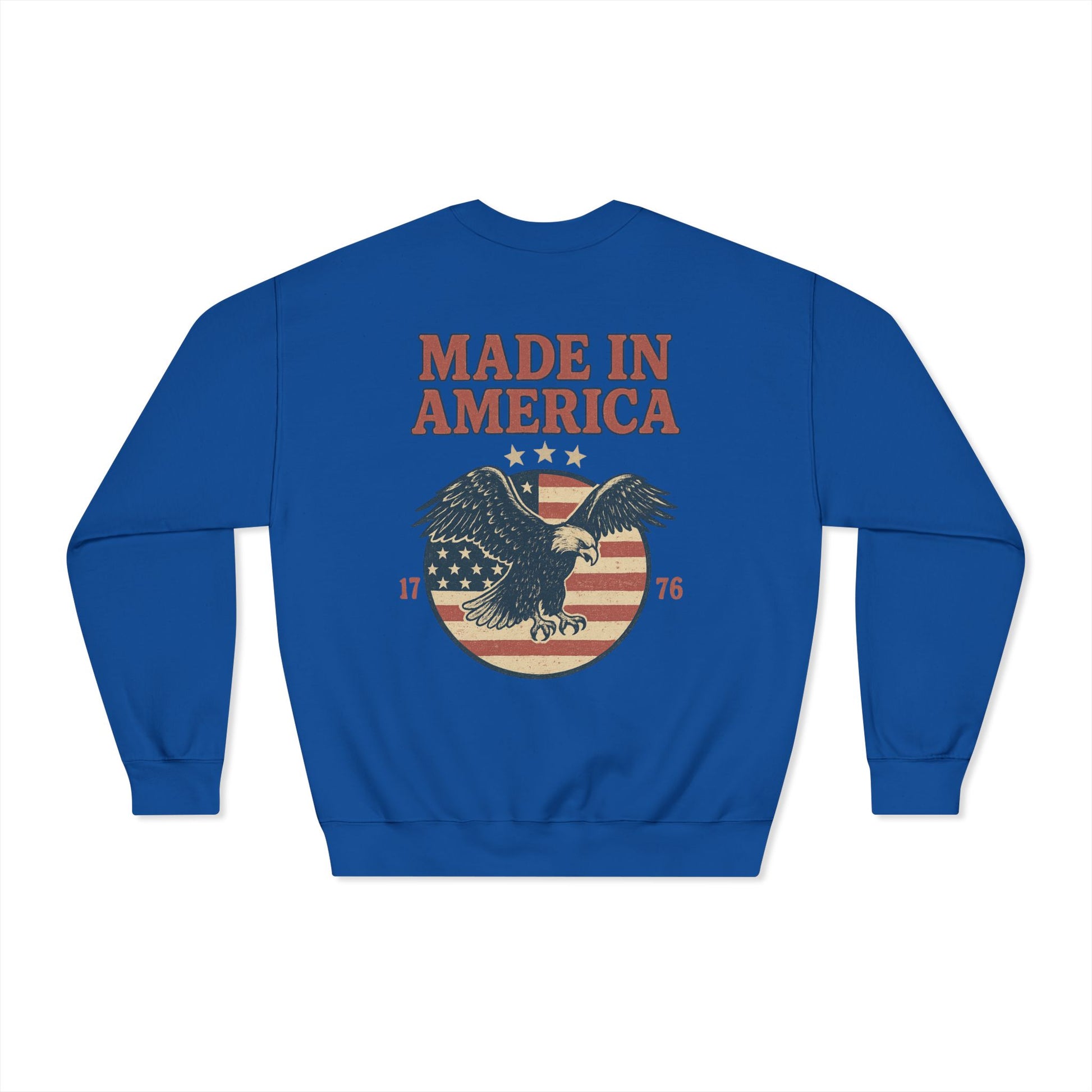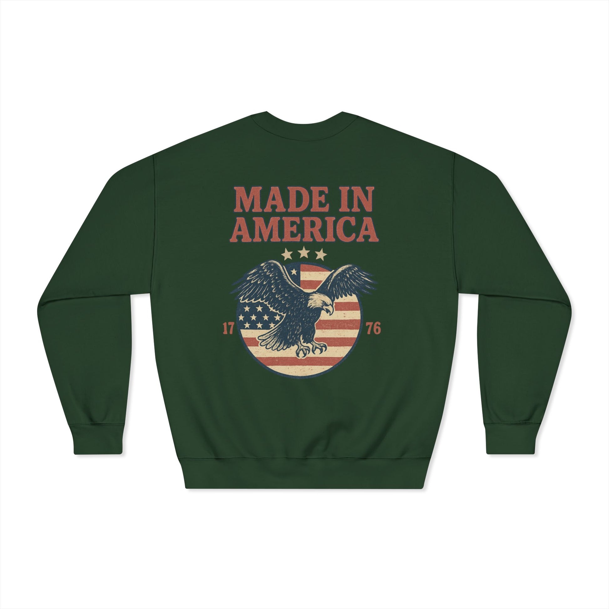 Made in America Crewneck Sweatshirt (front logo + back design) – American Pride Pullover