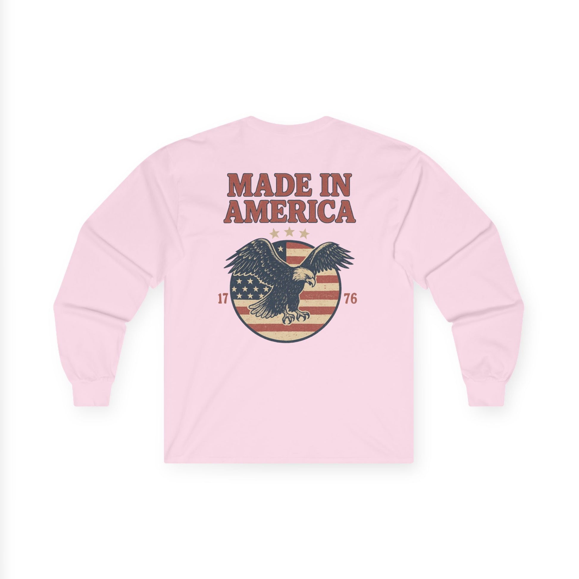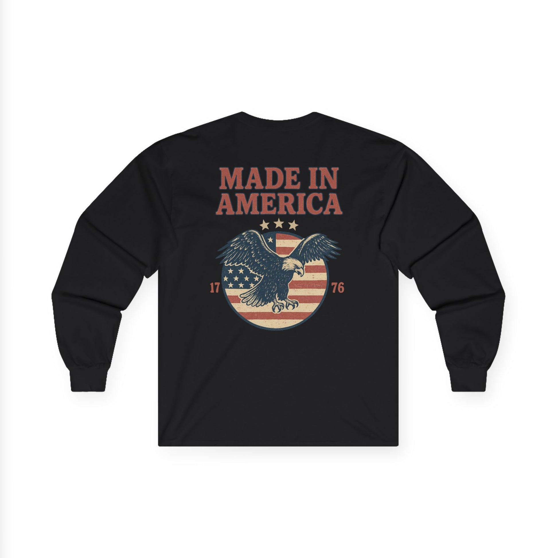 Made in America Long Sleeve Tee (front logo + back design) – American Pride Shirt