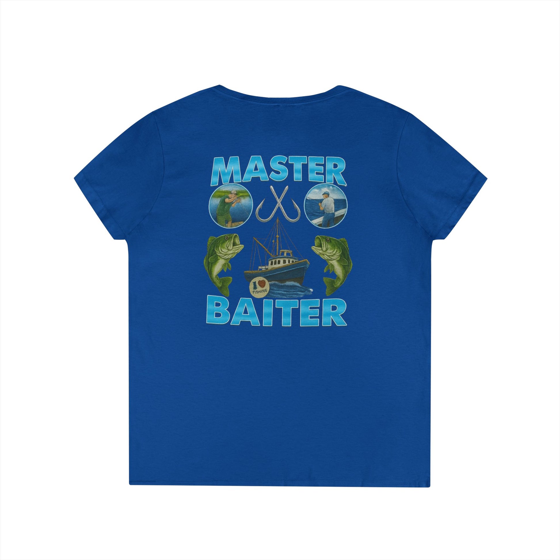 Master Baiter V-Neck Tee (front logo + back design) – Meme Apparel
