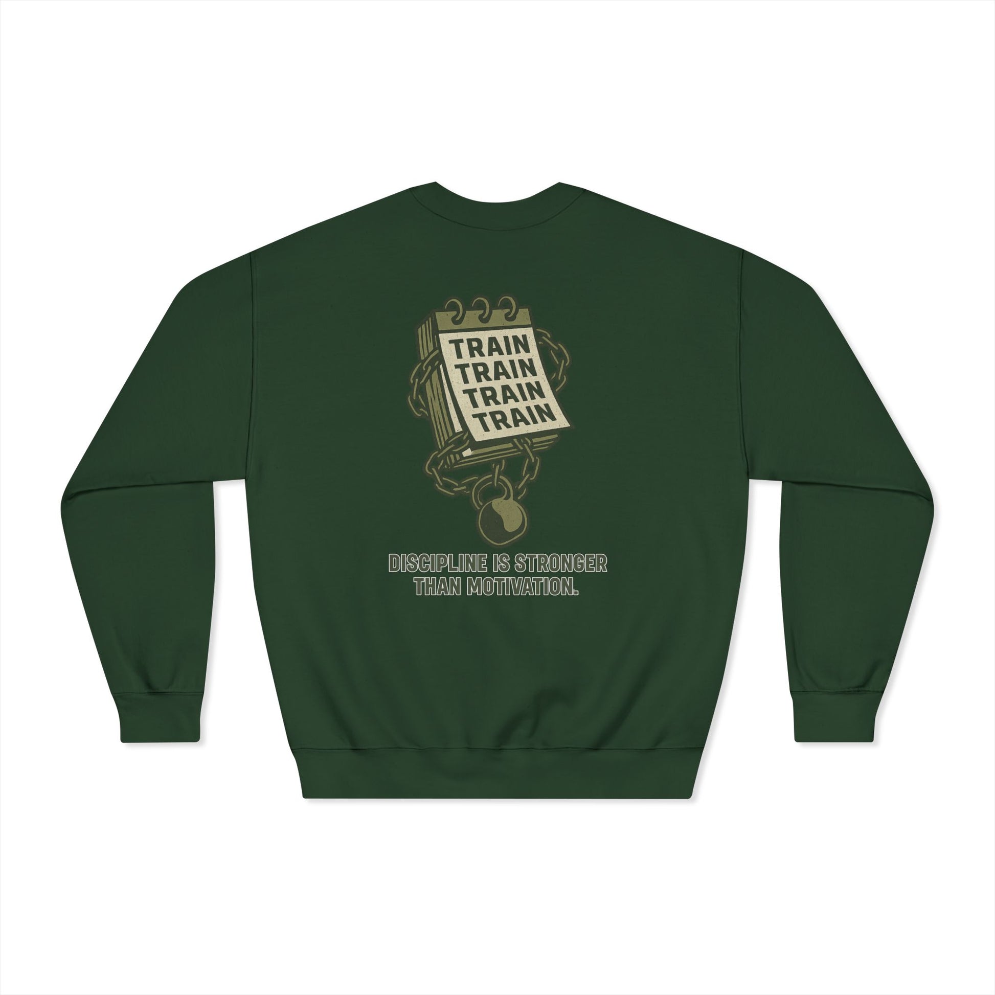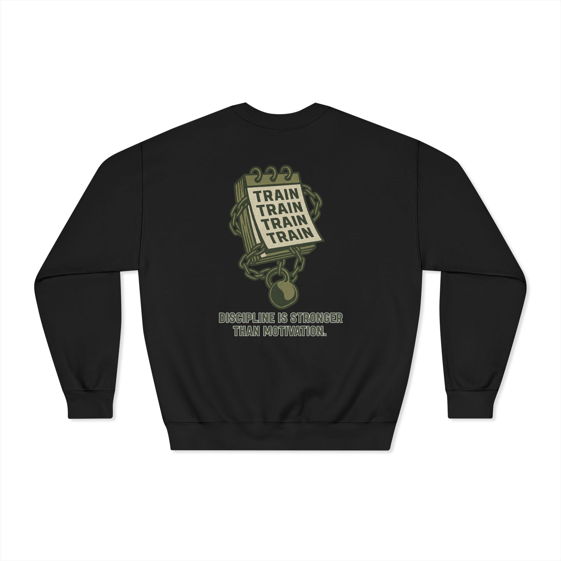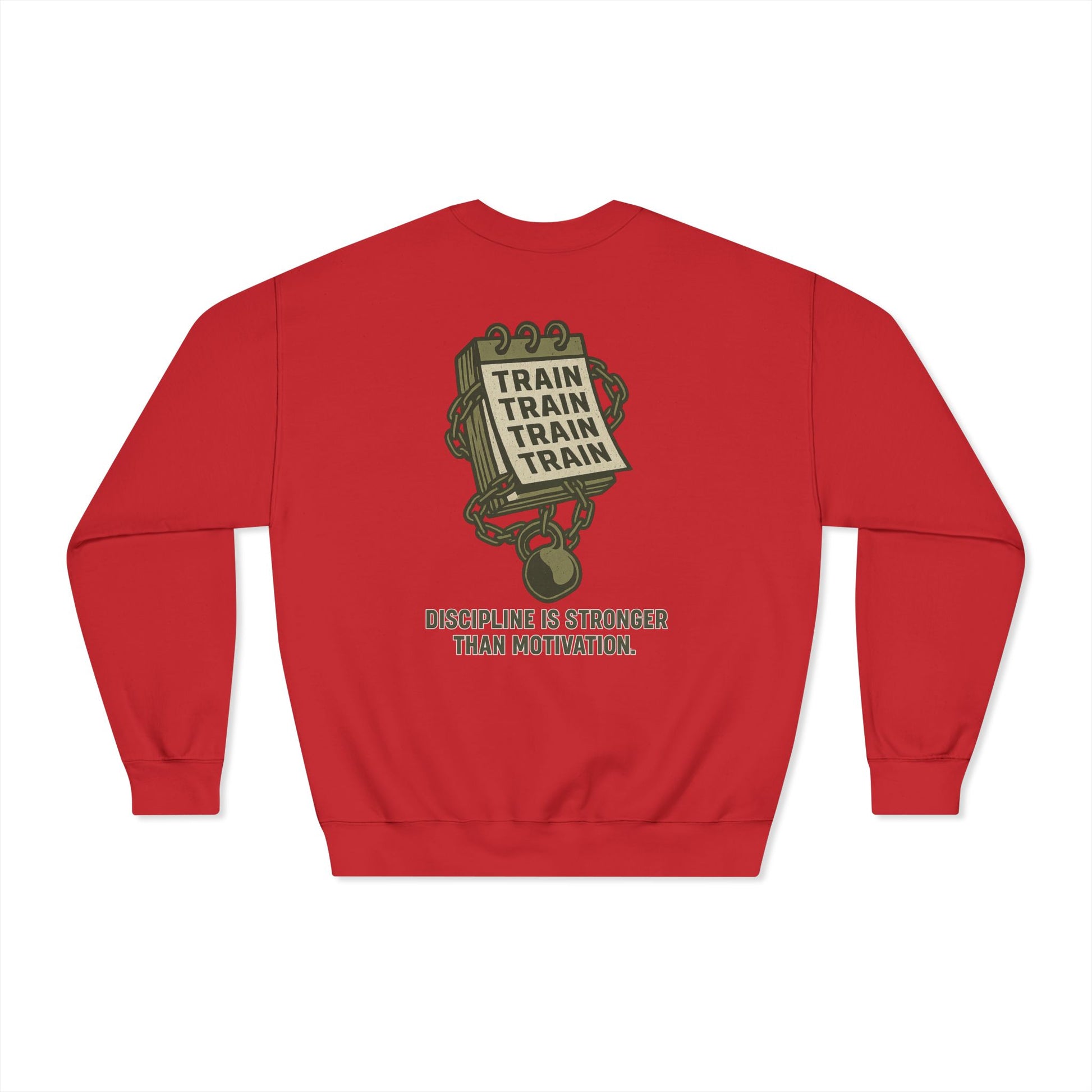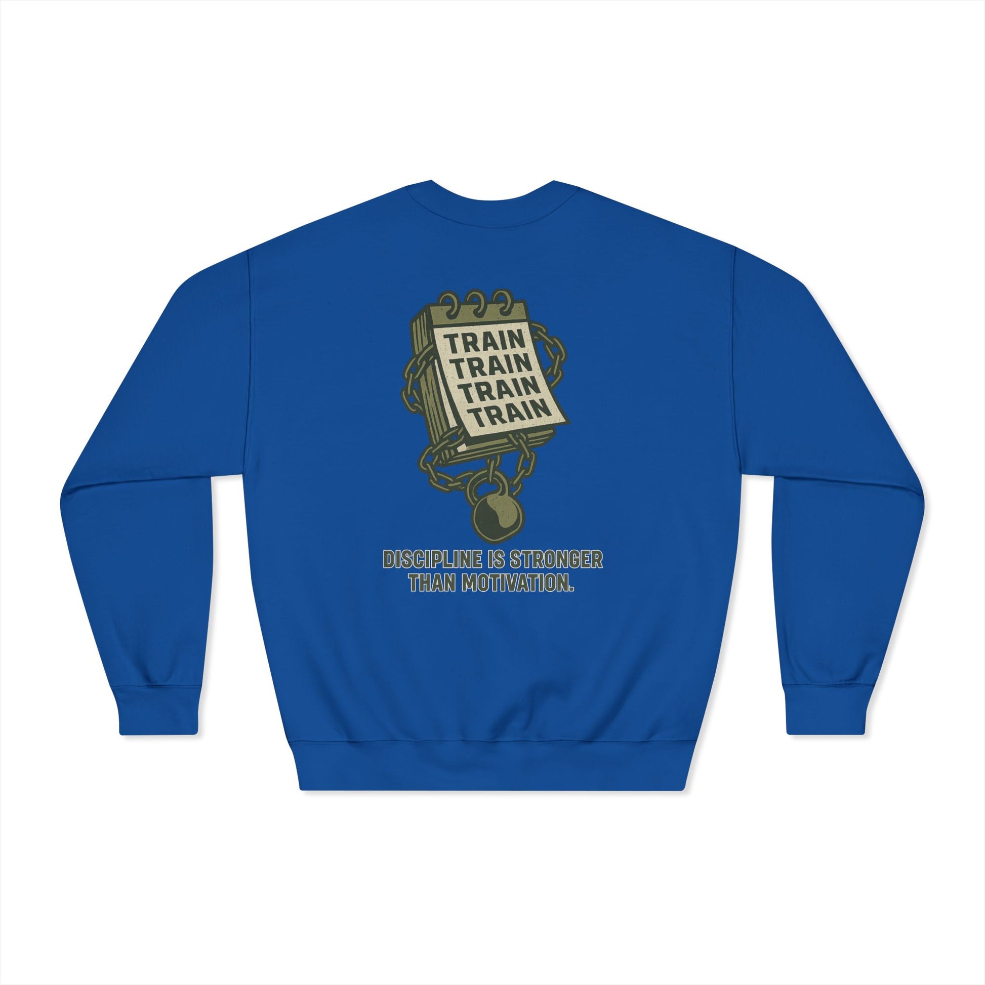 Train, Train, Train DryBlend Crewneck Sweatshirt (front logo + back design) – Gym Apparel
