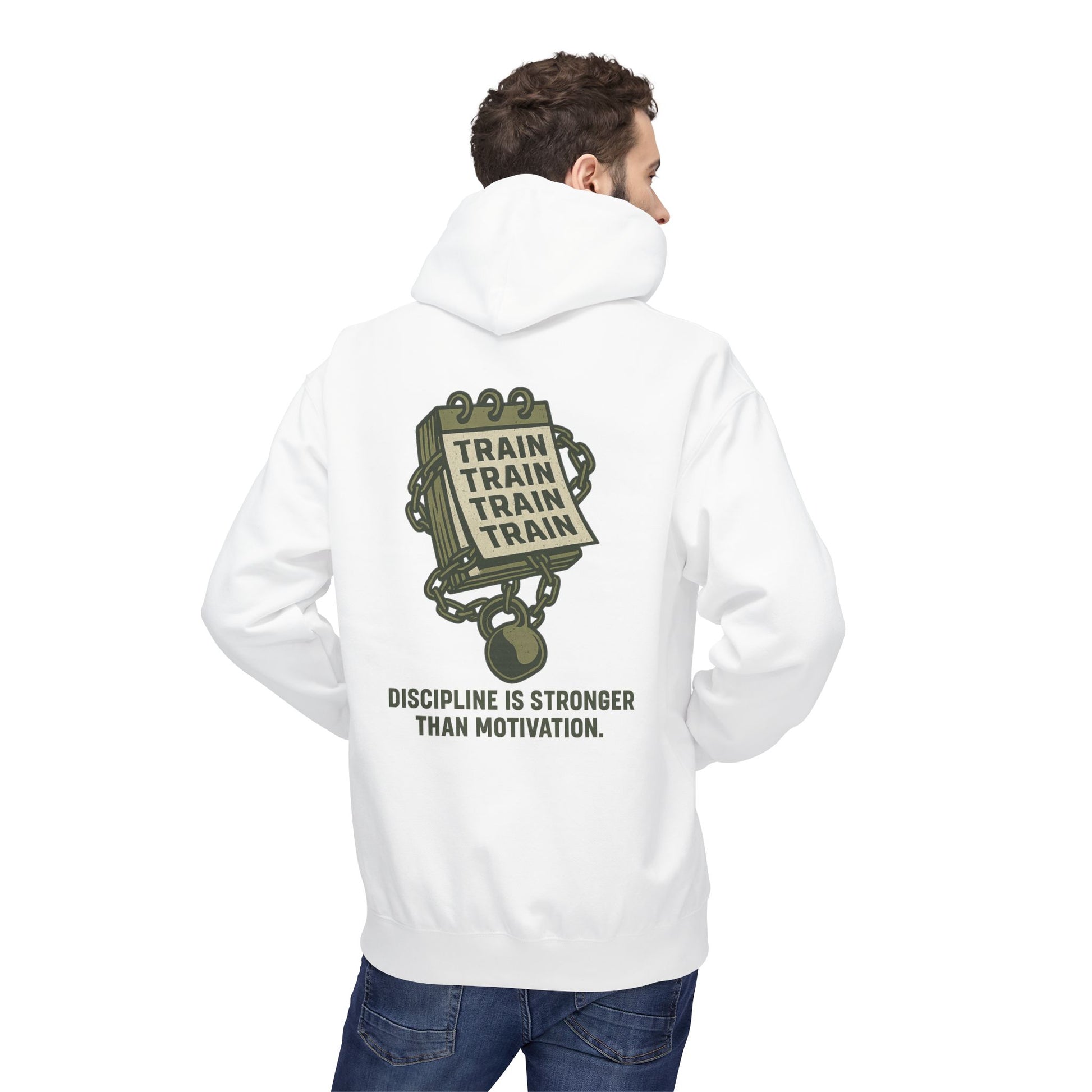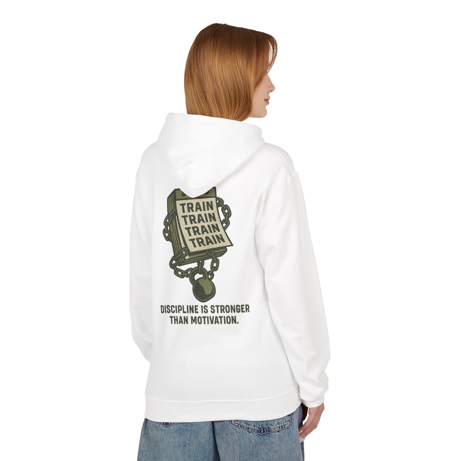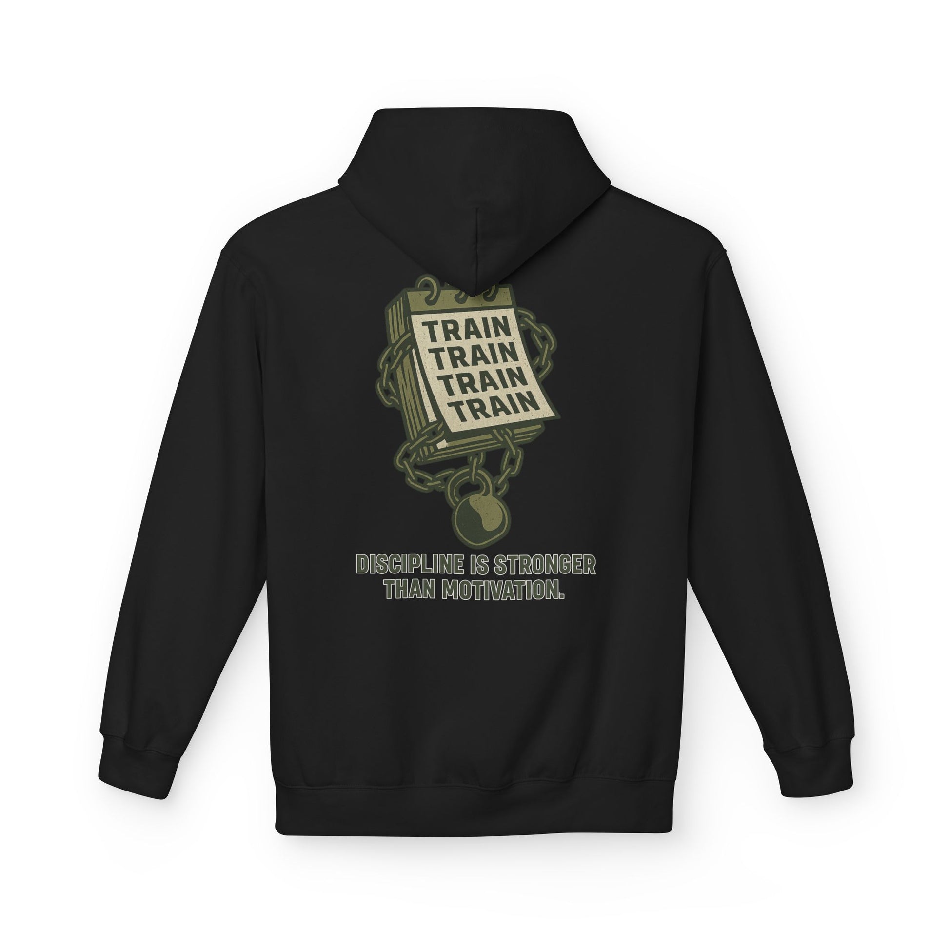 Train, Train, Train Midweight Softstyle Fleece Hoodie (front logo + back design) – Gym Apparel