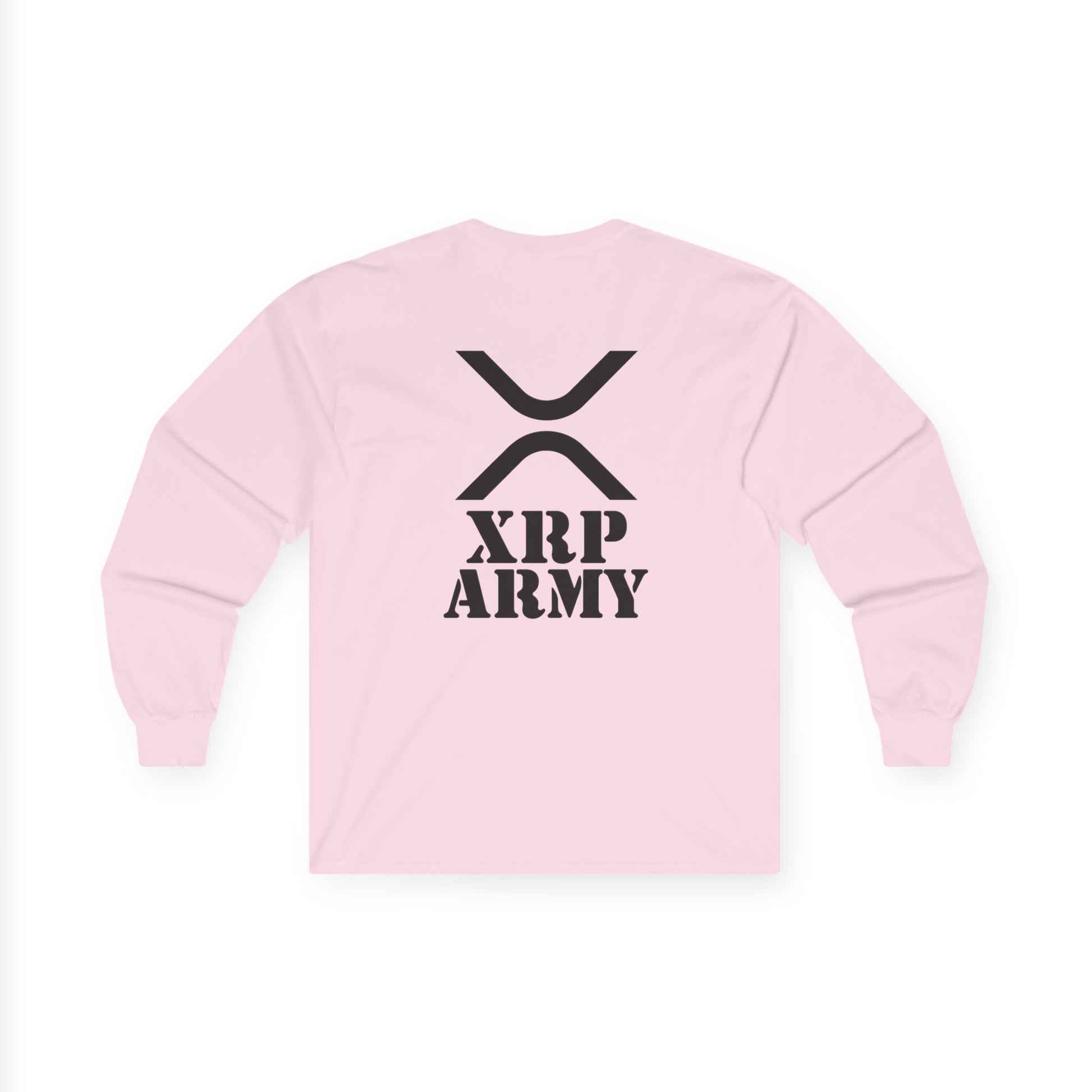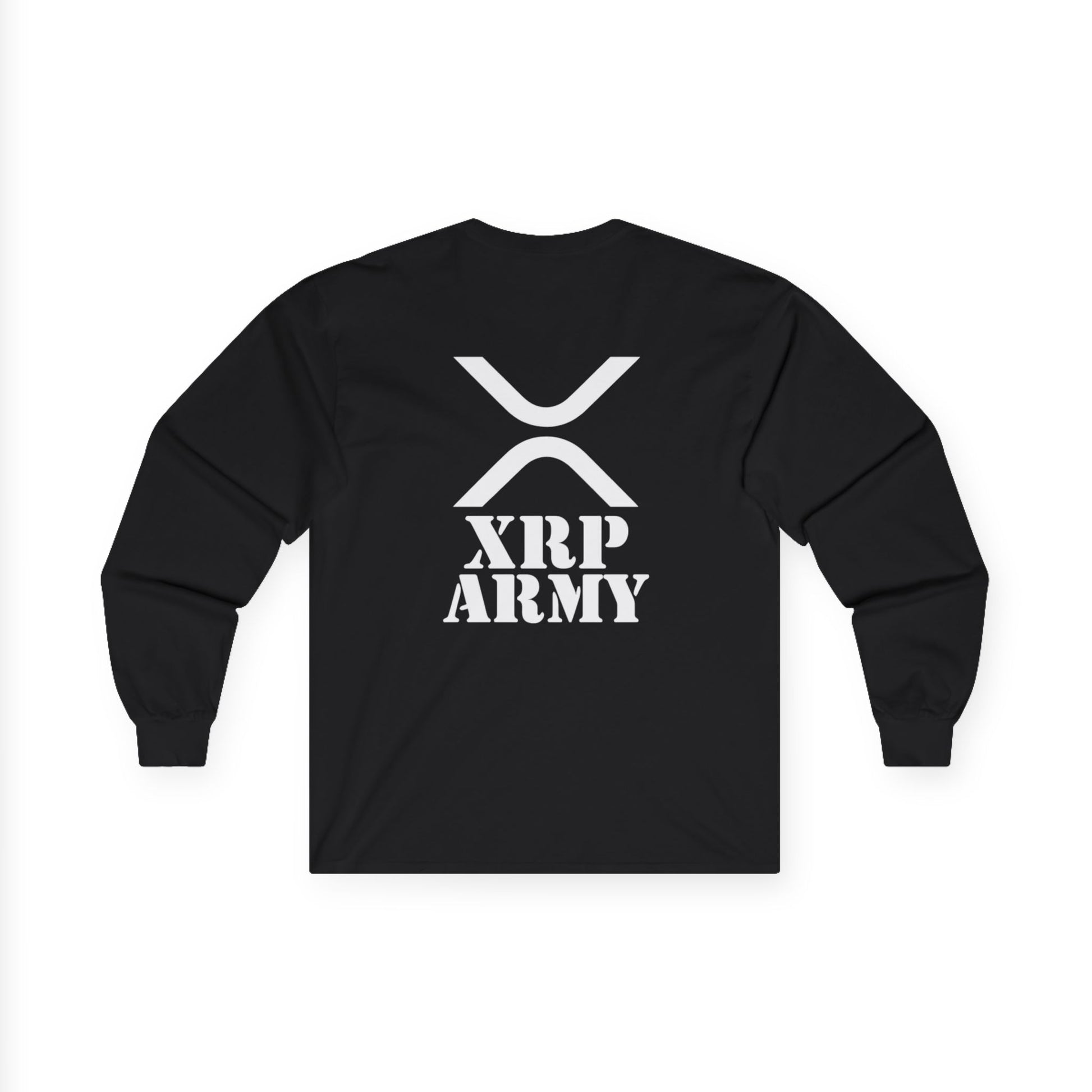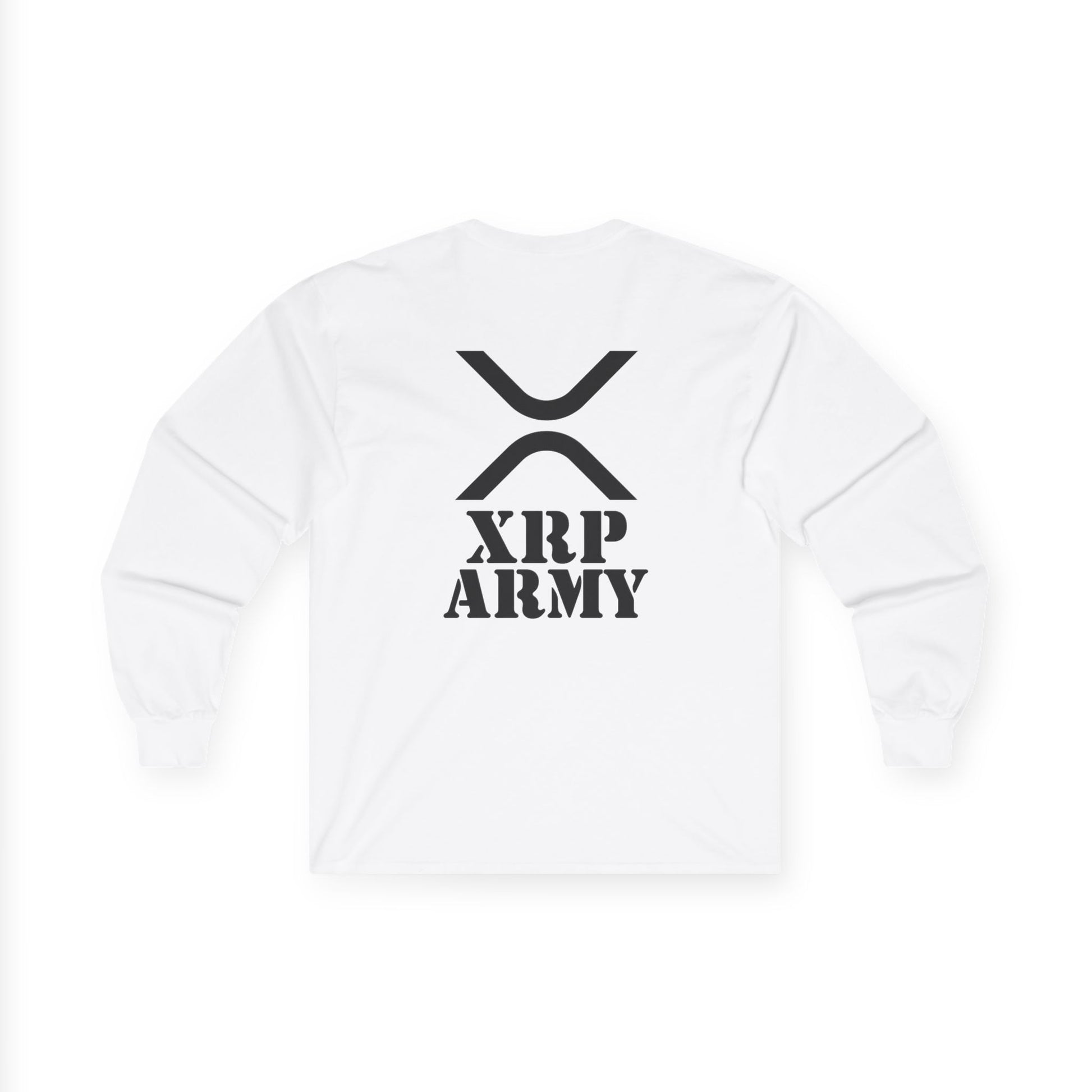 XRP Army Long Sleeve Tee (front logo + back design) – Crypto Vault Shirt